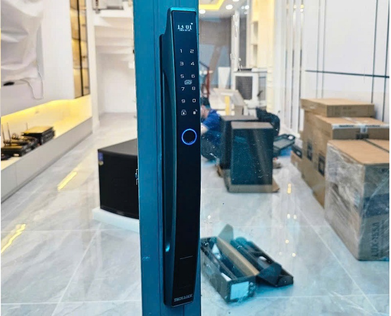 Lắp đặt khóa cửa vân tay cho cửa kính cường lực tại Nhà Bè
